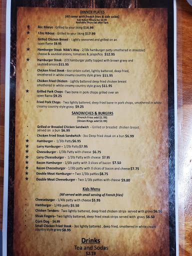 Looking for a sandwich or burger? You can’t go wrong with the Sandwiches & Burgers section, featuring a Grilled or Breaded Chicken Sandwich, a classic Hamburger, or the signature Larry Hamburger for those who love a meaty bite. The Chicken Fried Steak Sandwich is also a standout, offering the perfect balance of crispy and tender.
